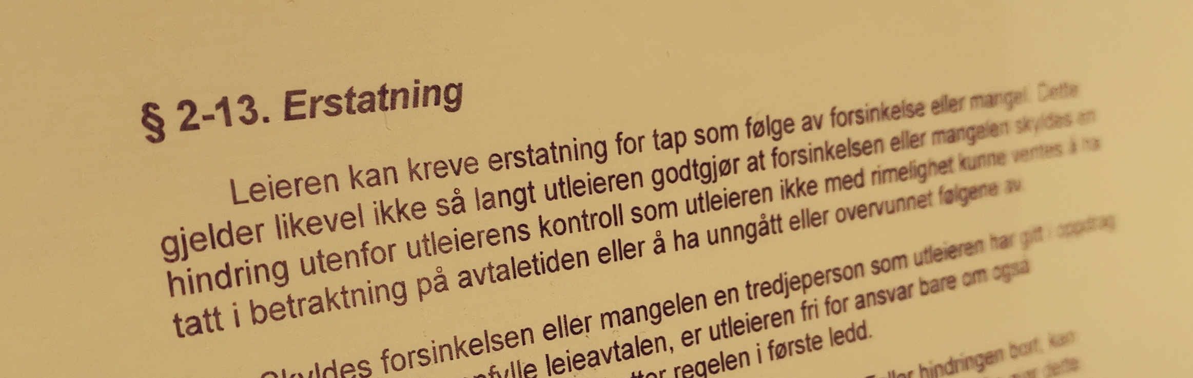 Husleieloven § 2-13 gir leieren rett på erstatning for tap som følger av forsinkelse eller mangel. Bestemmelsen gir anvisning på et objektivt erstatningsansvar, men